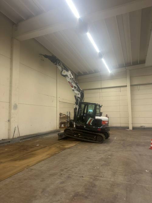 Na een zorgvuldige voorbereiding en een gedegen werkplan, waarbij de bedrijfsvoering van de veiling en onze sloopwerkzaamheden naast elkaar door konden gaan, zijn wij gestart. De betonnen vloer werd afgedekt met stalen rijplaten om verdere schade aan de ondergrond te voorkomen. Zo hebben wij dit project veilig, netjes en zonder verstoring van de dagelijkse bedrijfsvoering tot een goed einde gebracht.